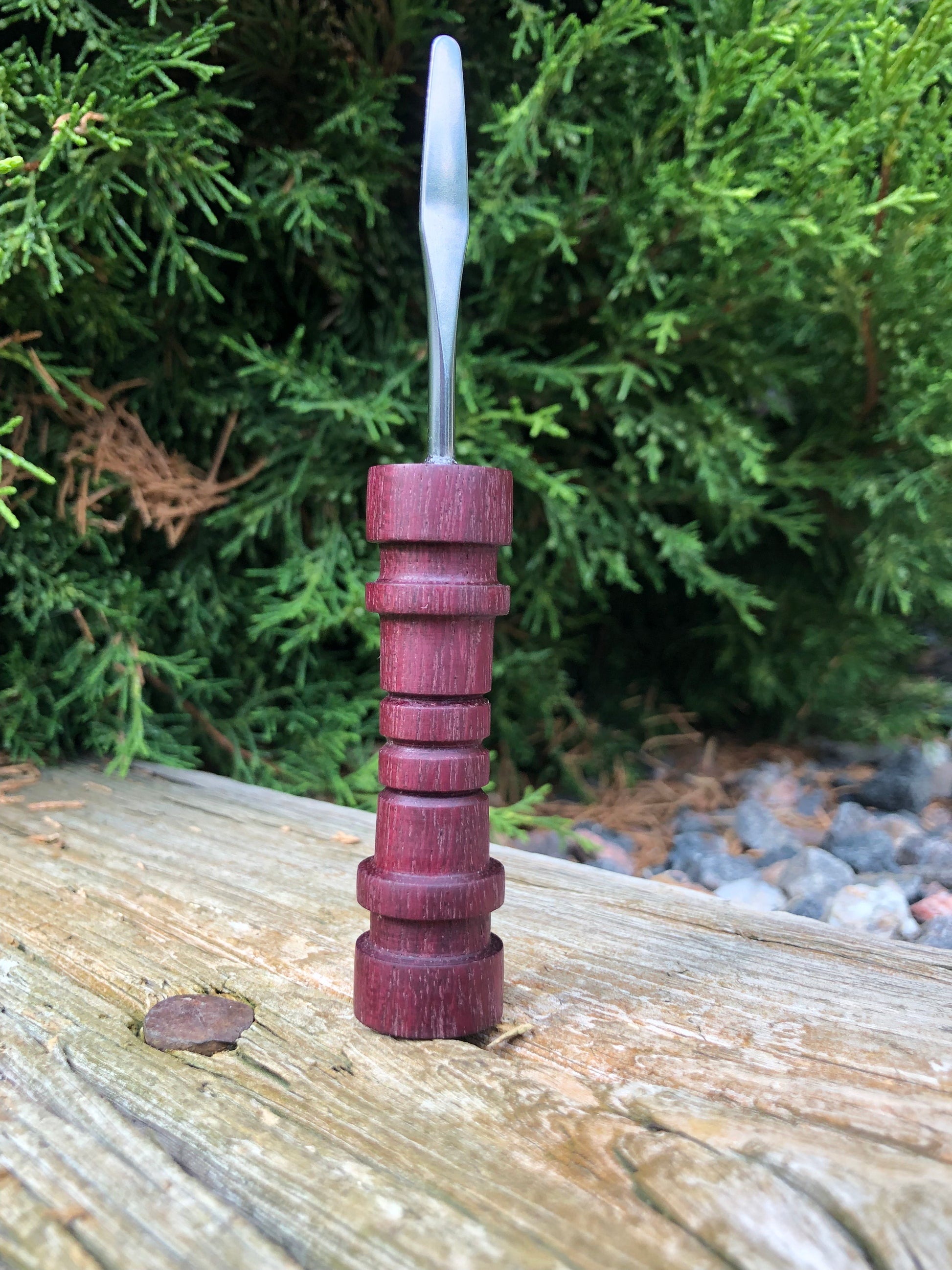 Handle made from Purpleheart, a hardwood found in Central and Southern that has a beautiful purple hue. The tip is made from 100% stainless steel.